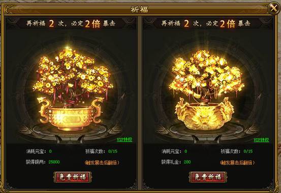 每祈福3次,下1次祈福必定暴击,获得双倍的奖励!
